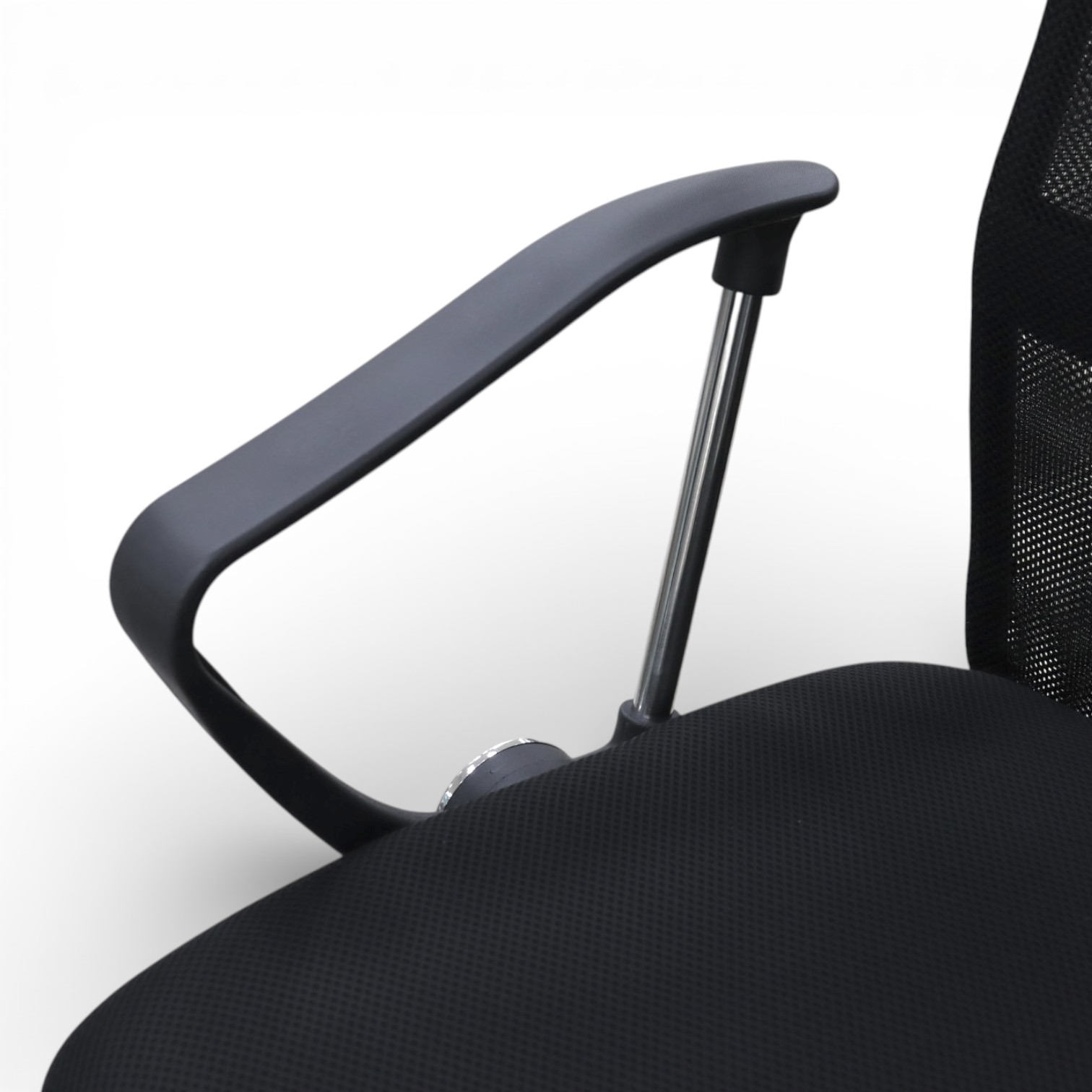 •  Материал обивки: Высококачественный черный кожзам (сиденье), износостойкая сетка (спинка).