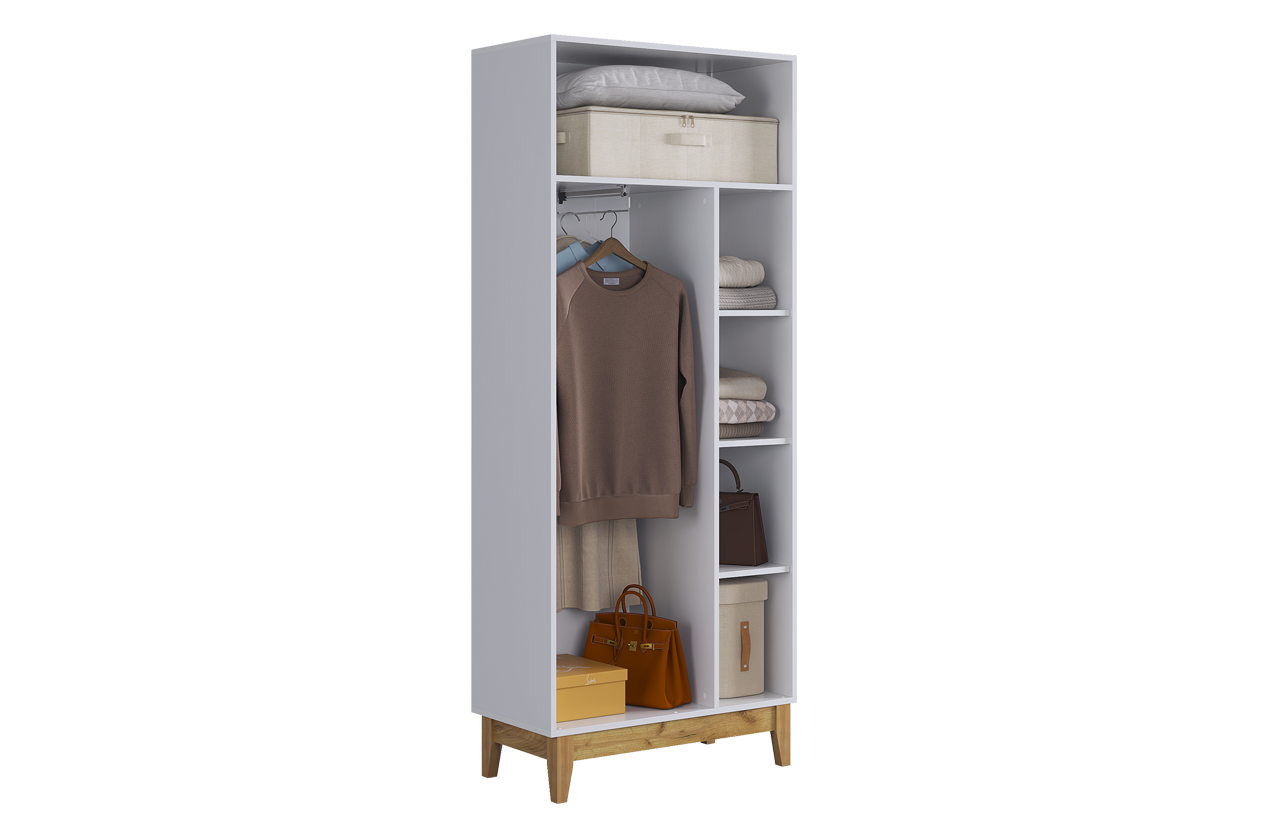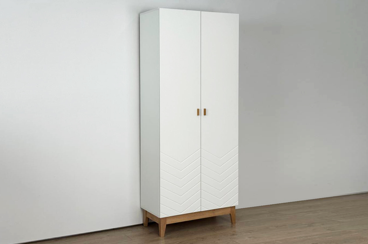 —Шкаф двухдверный Хюгге белое дерево/дуб крафт золотой/белый матовый