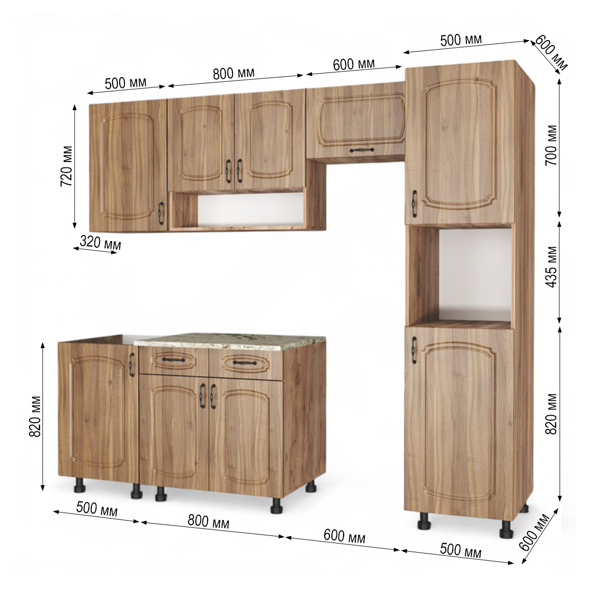 Кухня Комплект №4 Дуб крафт табачн./Орех антик (столеш Версаль+Сушка+планка) 1,8м