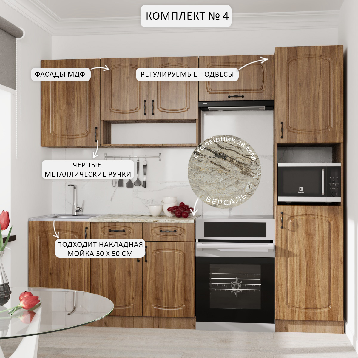 —Кухня Комплект №4 Дуб крафт табачн./Орех антик (столеш Версаль+Сушка+планка) 1,8м