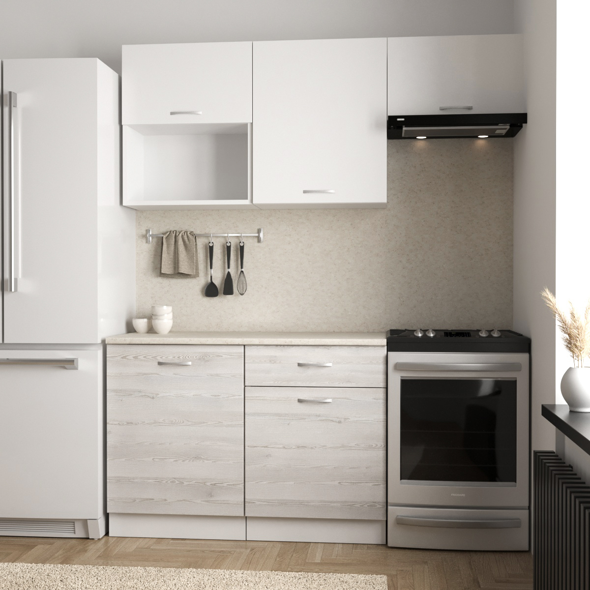 —Кухонный гарнитур Темпо №3 Белый/Сосна Лофт/Белый жемчуг/столеш. Берилл бежевый (без мойки) 1,2 м