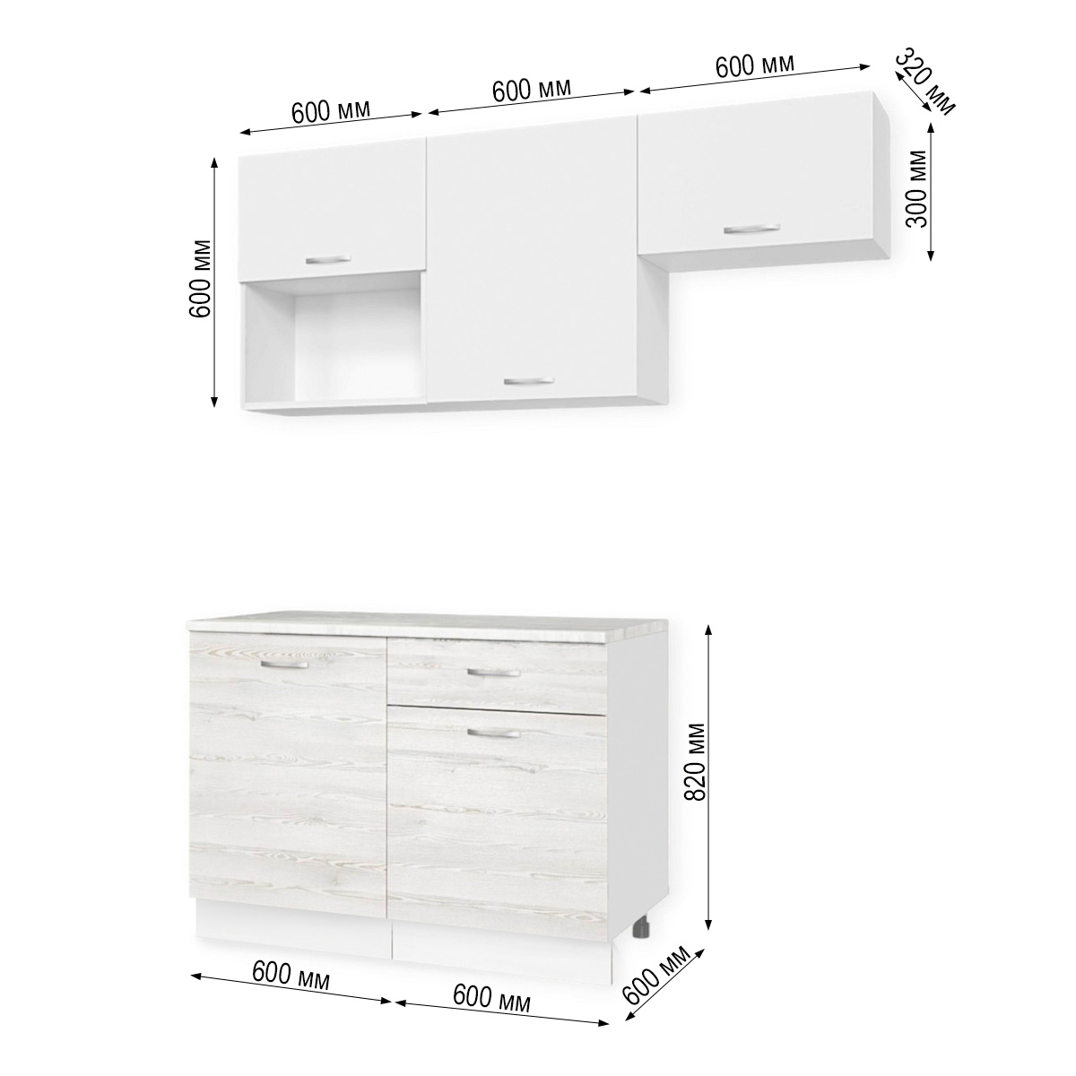 Кухонный гарнитур Темпо №3 Белый/Сосна Лофт/Белый жемчуг/Олива (без мойки) 1,2 м