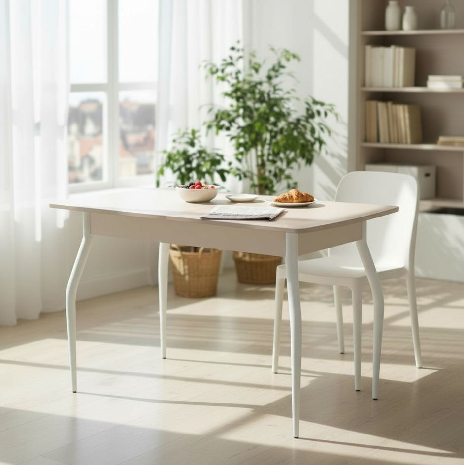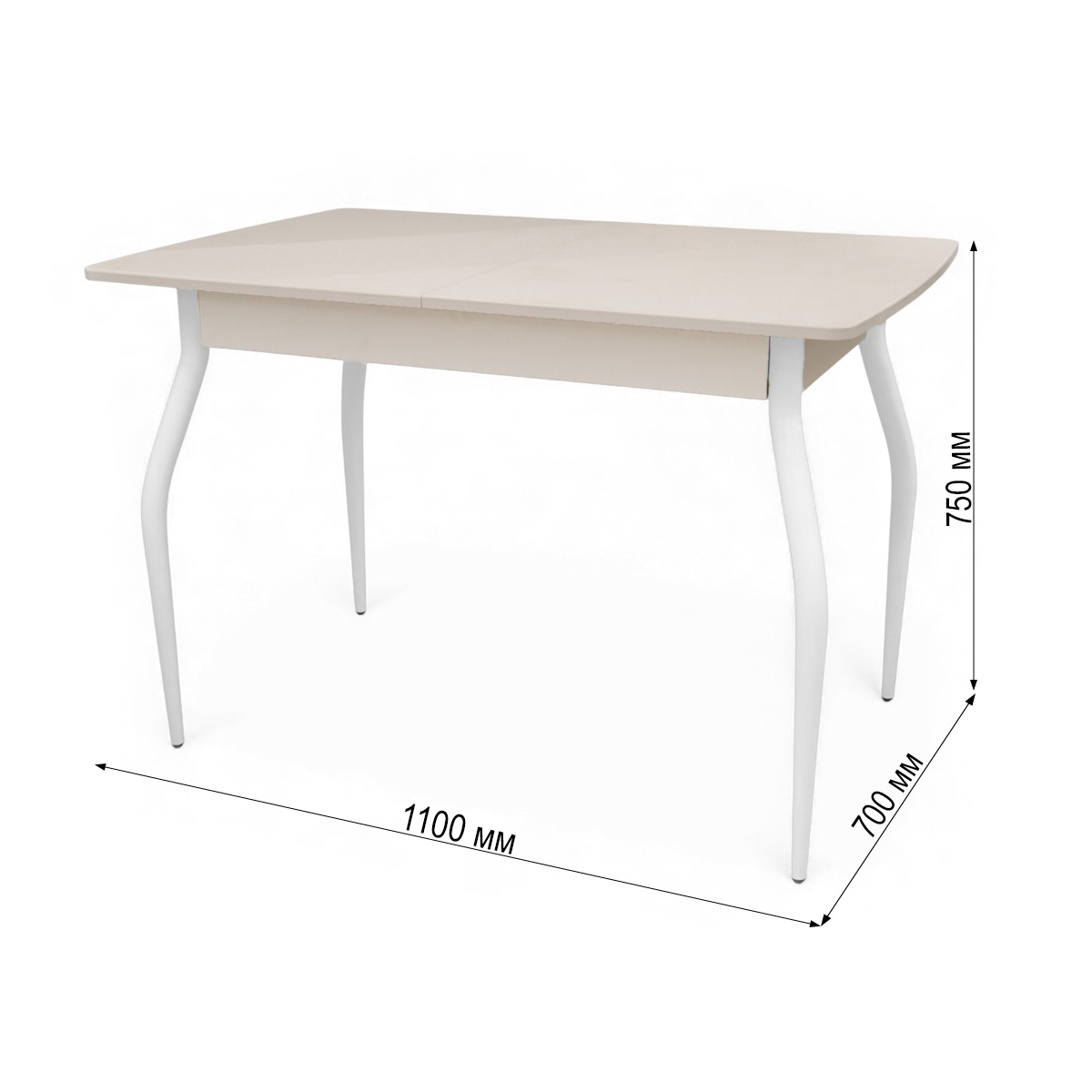 —Стол Уют 3 1100(+390)*700*750 МДФ Кашемир/Кашемир /опора №1 Белый (D40)