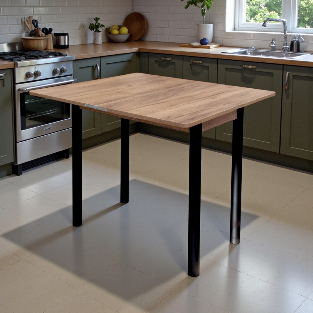 Стол Уют 4 450(+450)*800*750/ ЛДСП Дуб крафт табачн/опора D50 "труба"черный