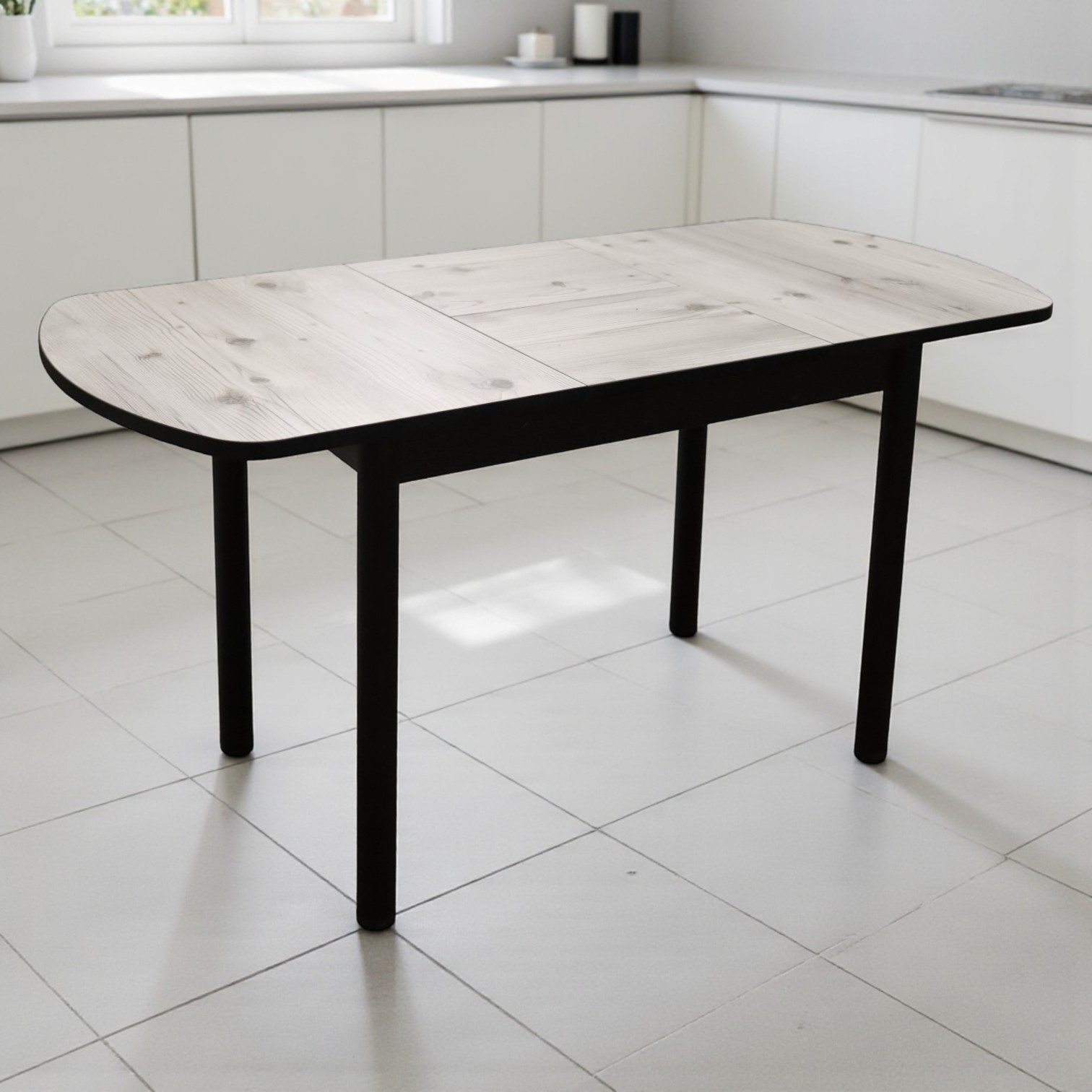 Стол Фаворит 1100(+400)*700 Пластик Бискайск.сосна,бабочка(B5)/ЛДСП бодега темн+опоры(черн)