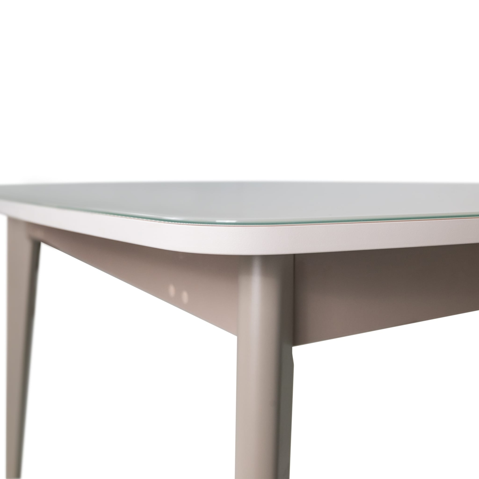 Стол полуовальной формы со стеклянной поверхностью – отличное решение для современных интерьеров. Скругленная форма углов эргономична для пространства дома, а отражающая поверхность поможет гармонично вписаться в интерьер и добавит больше света. Материал столешницы из ЛДСП + стекло, цвет – белый. Благодаря механизму трансформации стол увеличивается на 550 мм, вставка из ЛДСП белого цвета. Вставка стола хранится внутри.