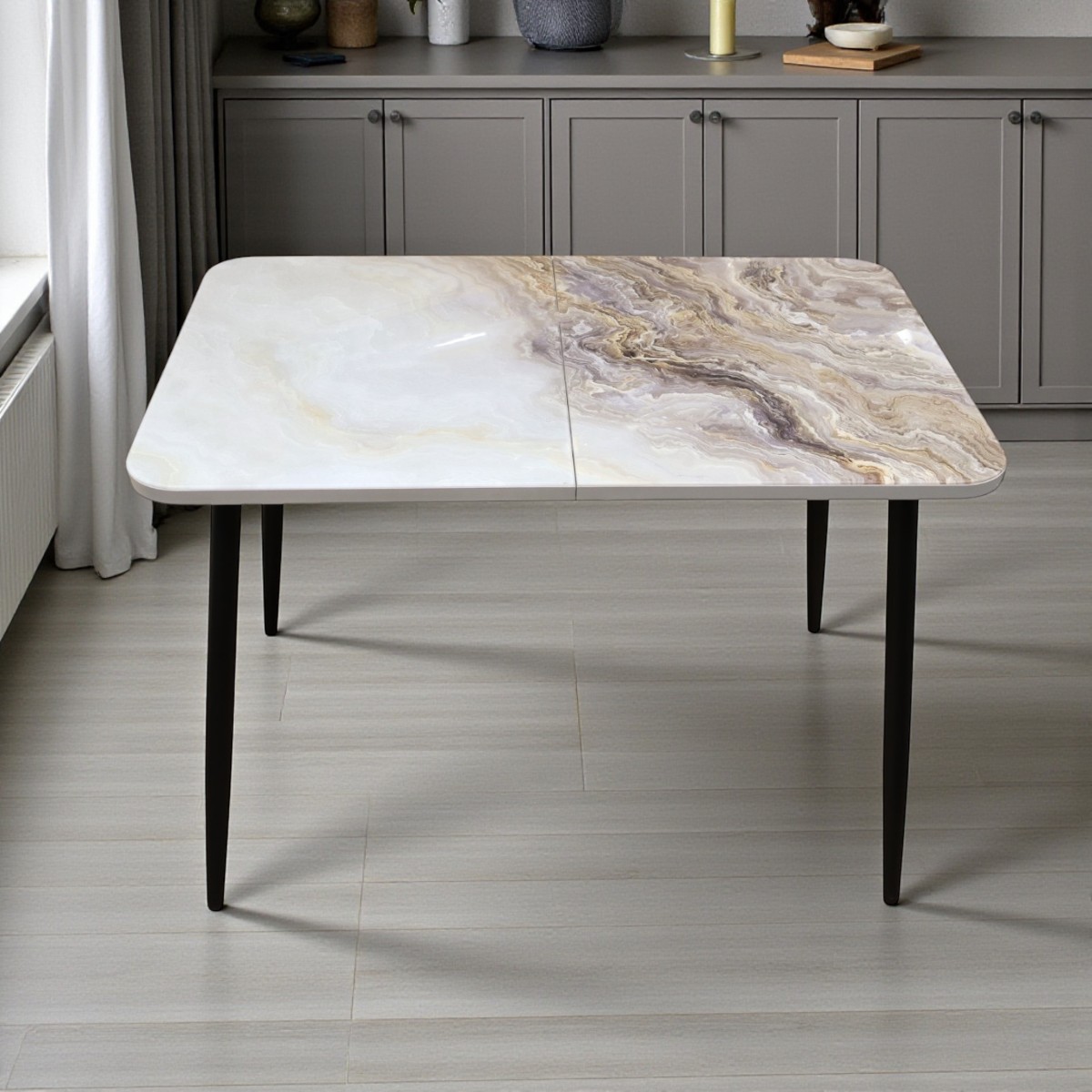 Стол Турин 1100(+400)*700,бабочка, ф/печ Мрамор КР051, B1+металл черный