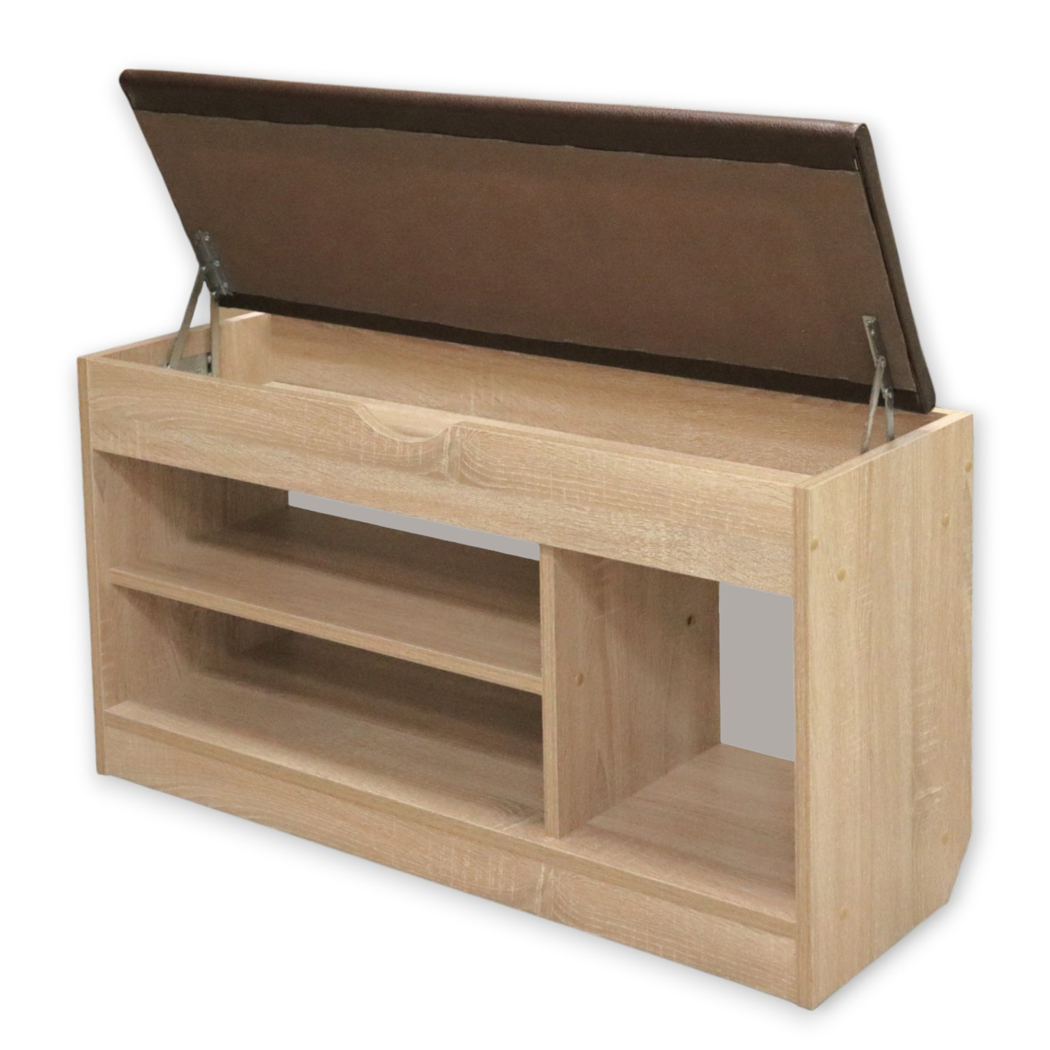 Тумба для обуви БН-196-04 (900*310*510) дуб сонома/кожзам 305-02 корич