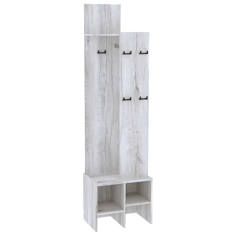 ✓ Напольная вешалка: Стационарная штанга, металлические крючки, обувница и антресоль.