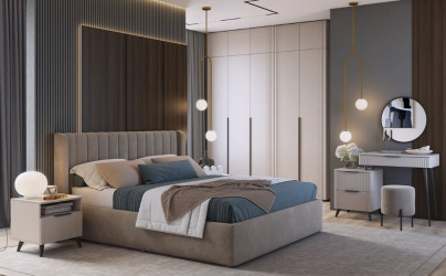 В некоторых сериях есть несколько вариантов комода и тумб по размеру. Обратите внимание, что многие кровати оснащены внутренним пространством для удобного хранения вещей (несезонных или постельного белья),а кроме этого, имеют сложное изголовье с тканевой вставкой, в том числе, и большого размера и даже асимметричной формы.