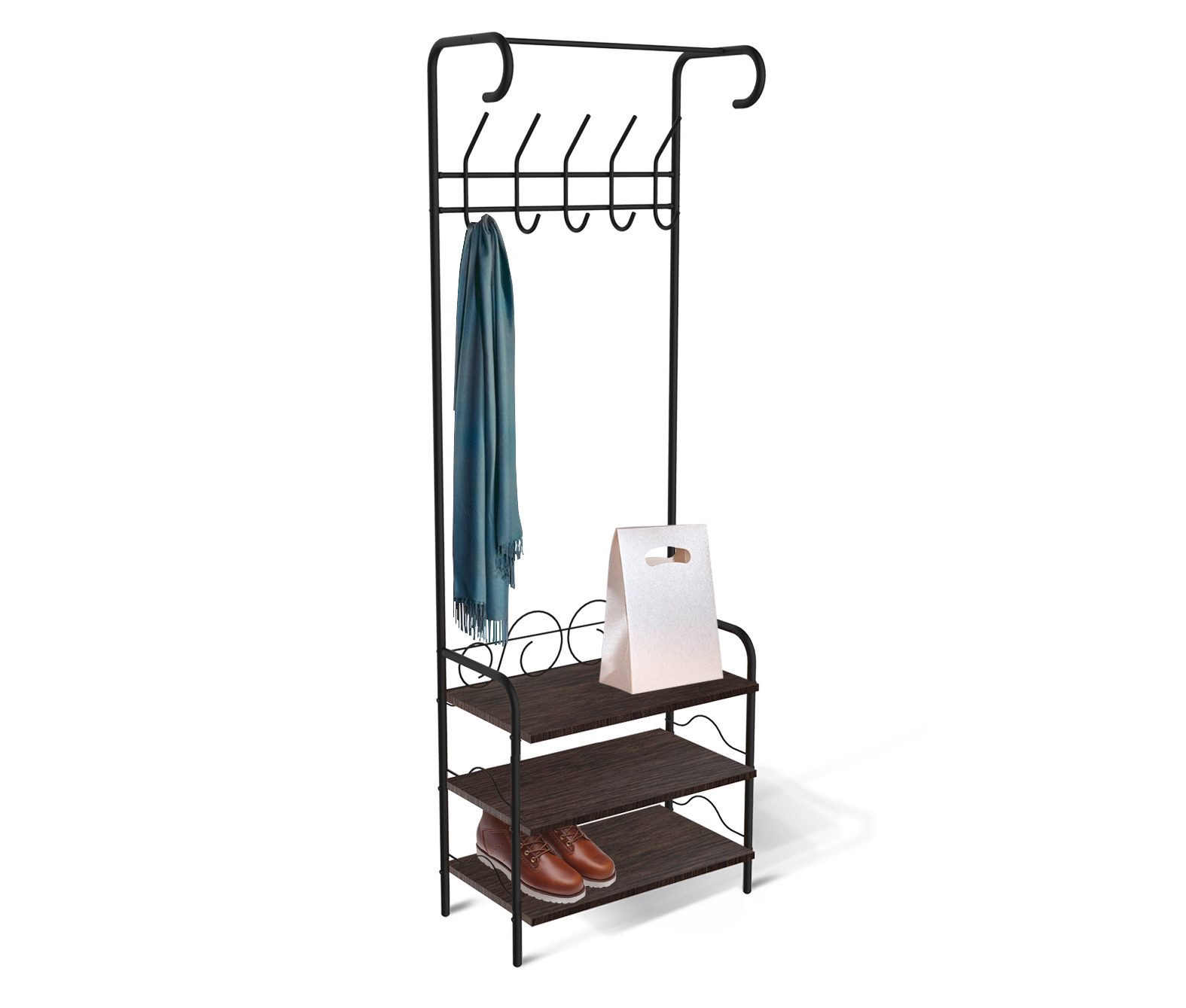 Функциональная компактная прихожая в классическом дизайне. Превосходно выглядит в небольших квартирах. В конструкции предусмотрены полки для обуви, сумок и зонтов и крючки для верхней одежды.